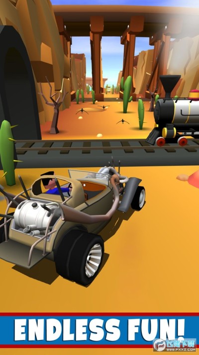 3.与其他跑酷游戏不同的是,在该作中玩家并不是控制人物进行跑动,而是控制一台失控的轿车,利用左右移动的方式,躲避一路上的树木、汽车以及火车等障碍。但万变不离其宗,依旧是躲闪障碍捡拾、道具等操作,另外游戏还设有收集系统,玩家可以使用获得的金币来购买外形更炫的汽车。
