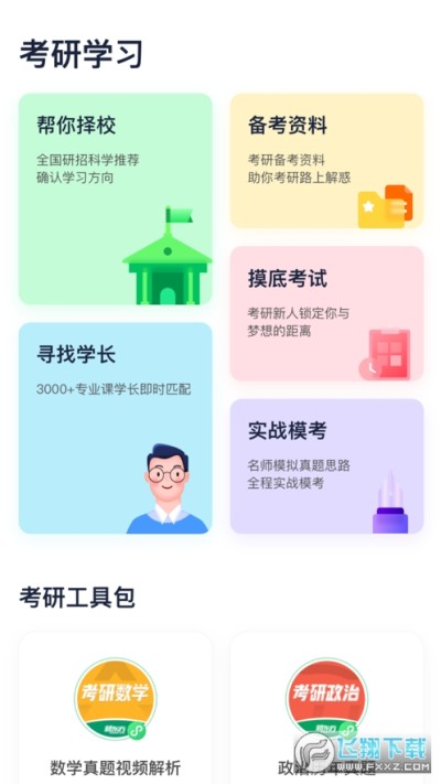 新东方考研学习平台,围绕线下授课场景APP提供课程信息,到课签到,回放补课等功能。阶段测试和答疑板块为学员搭建从课堂知识学习到运用输出的桥梁,保证知识点的全面覆盖度和深度掌握。作为考研资源平台,提供真题题库、择校、备考资料、 专业课学长等一系列资源。