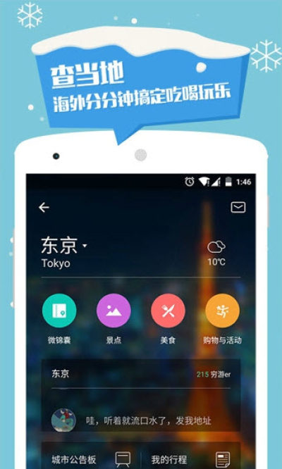 这款穷游手机软件是专门为喜欢外出旅游的朋友准备的,大家可以在这里和其他的游客进行在线沟通交流,分享旅游经验,同时还可以了解到周边各种好玩的与好吃的地方,穷游这款旅游指南工具可以帮助大家更好地享受旅行的乐趣!