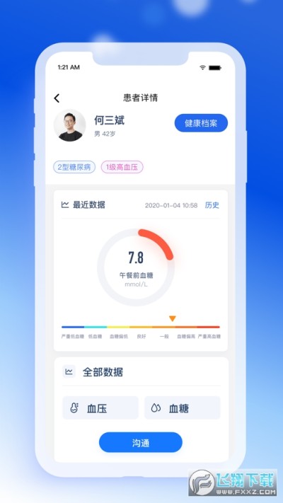 集合了资讯、测量提醒、血糖血压记录、健康课堂和商城等多项服务。