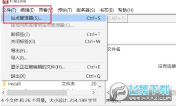 3、为了使用方便,添加到站点管理。点击文件下将此当前连接添加到站点管理器,下次再连接的时候就不用输入信息,直接在站点管理器中点击连接就可以。