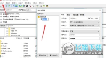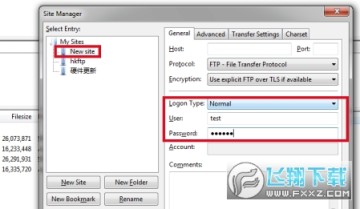 3、在站点管理器中点击New Site即可添加一个站点,New Site之后修改站点名称,然后填写主机IP地址、端口号、用户名和密码,最后点击连接即可