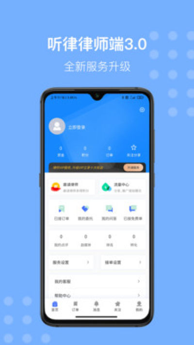 4、就问平台会根据律师地域、专长、在线状态、用户好评等为律师推荐订单,请注意开启接单服务功能;
