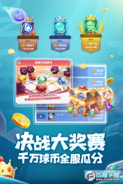 2、实时匹配,球你来战,你需要使用各种球球技能消灭敌人随时可以开局;