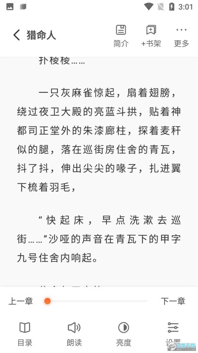 3、强大功能:各种强大的个性化设置功能,随意定义背景颜色、字体大小,拥有一站式目录、夜间模式、体验式反馈等实用功能,便捷的看书软件!