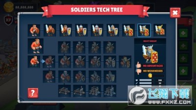 第二用作改进兵种方向,兵种的选择有很多,比如骑兵、盾兵、剑士以及攻城车。