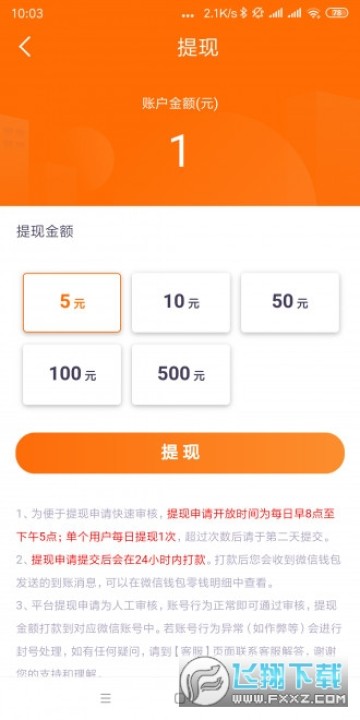 4、首次赚满5元即可提现到微信,后续10元起提,24小时内到账。