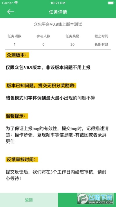 平台提供丰富的众测任务,包括BUG探索、用户体验、内容质量三大类任务,平台会持续不断开放更多任务类型给众测用户