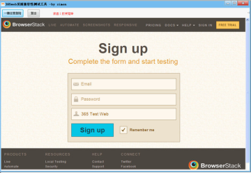365web页面兼容性测试工具是一款简单高效的用于帮助大家在登陆需要注册的网站时解决繁琐的注册流程的桌面工具。让大家365天都能免去邮箱,手机验证等流程。