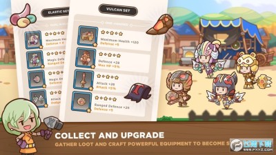 装备有四种:武器、盾牌、盔甲和头盔。它们被按照套装和层级。每一层级都有特定数量的套装,每一层级的部分装备都是从游戏的特定区域掉落的。每件物品最多可以升级到5星以获得更好的属性奖励。装备可在每个区域的铁匠处用黄金和特定物品升级。