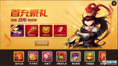 ★首充双倍返利,首充即送四星神将吕布,红色装备,以及其他稀有道具,机会只有一次。