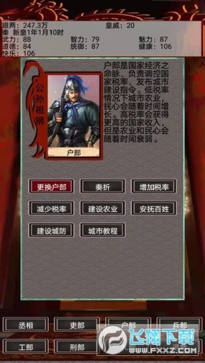 2、这些属性主要通过强化门客来增加,智力影响每次征收到的钱财数额,政治影响收到的粮食。