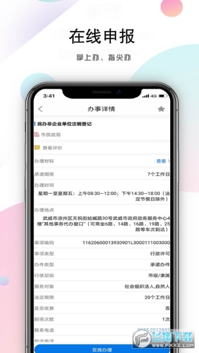 “武政办”是武威市政府政务服务中心按照全国一体化政务服务平台标准规范开发的政务服务移动端APP,设立了个人与法人事项申报办理、办件查询、基层服务、咨询投诉、信用信息查询、公共服务查询、新闻资讯浏览等功能栏目,实现政务服务事项“掌上办”“指尖办”,为用户办理政务服务事项提供方便。