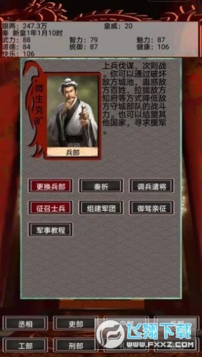 1、游戏的属性是力量、智力、政治和魅力,这四个属性的结合是玩家的权力价值。
