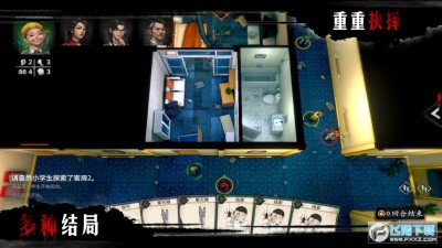 4、根据剧本,玩家将会来到特定的场景中(比如无人的医院、豪华的游轮)。场景被划分为一个个区域和格子,其中分布着大量可调查的线索、可拾取的道具和需要解开的谜题,玩家以回合制轮流行动,不断探索、抉择、检定、推理、战斗。