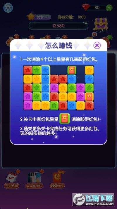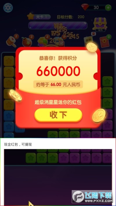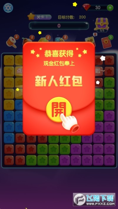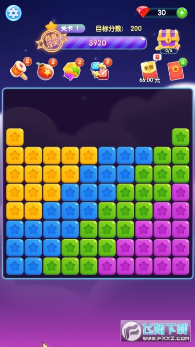 3.删除屏幕上的所有方块,无数关卡等着你解锁,五星就会得到红包。