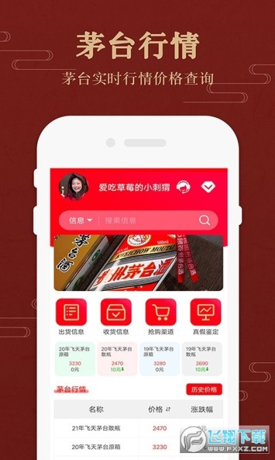 茅台实时行情价格app是一款专门为茅台打造的实时行情查询软件!有了它用户就能及时掌握最新茅台行情信息,并且还为用户提供了冒险真假鉴定以及交易服务,喜欢朋友快来下载吧!