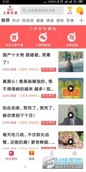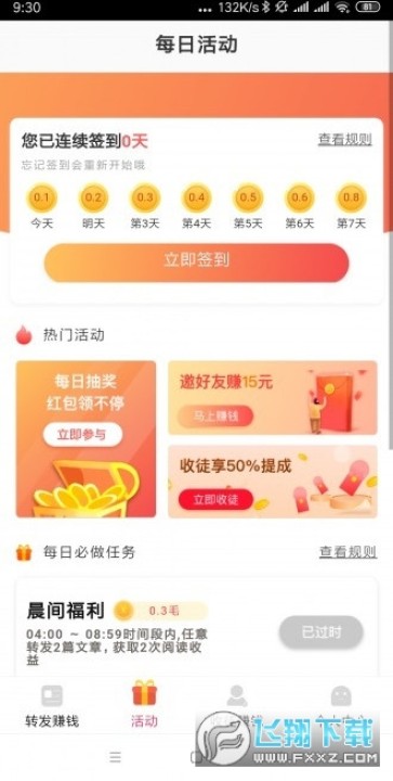 1、新人下载来分赚就送1元,转发文章单价全天2元一次,支持上传文章