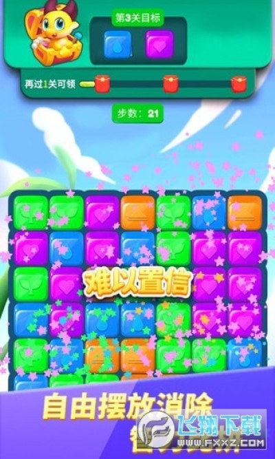 1、消除挑战,全世界的小动物都在这里出现,我们面对的是非常梦幻的游戏场景,大家一起来挑战吧;
