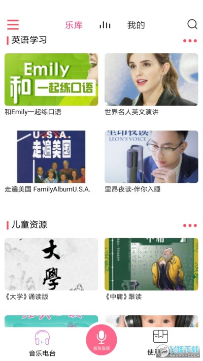 音乐、有声、儿童三个资源类型,可选择喜爱的资源推送到音箱端播放;