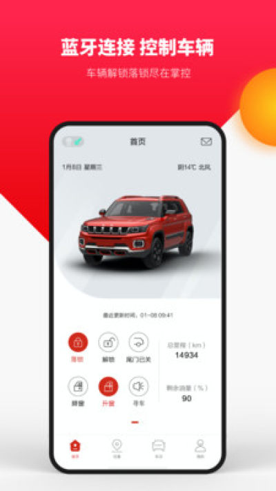 悦野圈BJ30app针对北汽越野用户定制化开发,基于T-Box(蓝牙数字钥匙版)的硬件产品特性,在悦野圈BJ30 APP中实现了车辆状态查询、远程控制和启动车辆、蓝牙数字钥匙分享与管理等功能, 让您出行更简单。