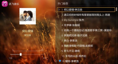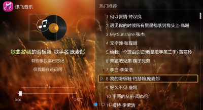 这款讯飞音乐是应用于安卓电视机顶盒的音乐播放软件,其拥有最新最热的音乐歌曲,且音质效果都非常的好,给大家无以伦比的听觉享受!