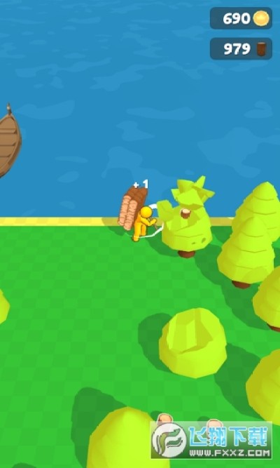 1. 玩家使用拇指滑动,控制小人移动,砍伐木材,扩张,探索小岛。