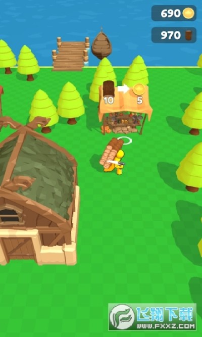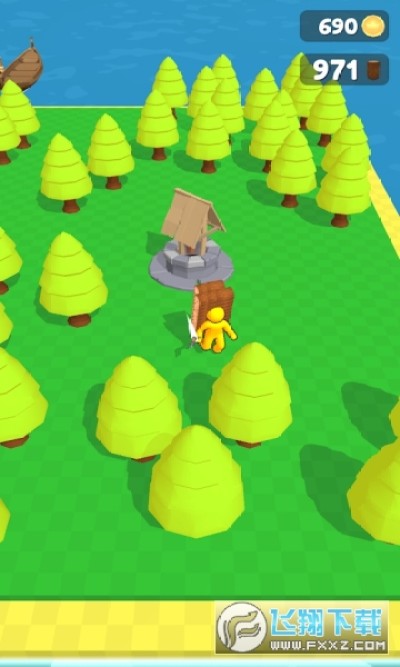 1.手指控制让玩家更快上手,游戏玩法越简单上手越容易,砍伐木材,升级斧头,扩张探索新的小岛。