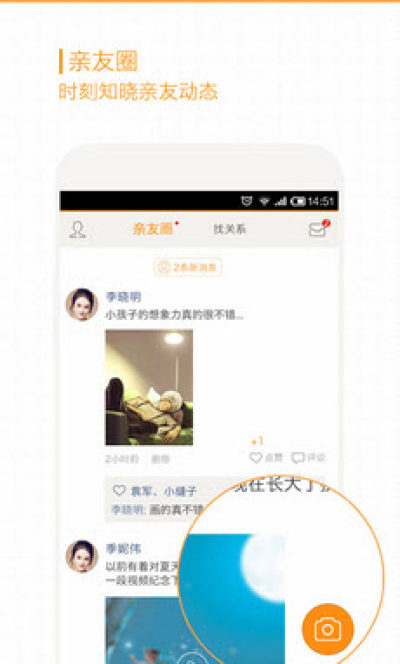 2.亲友圈,时刻分享图片、视频,即使身处异地,每日感受亲情围绕。