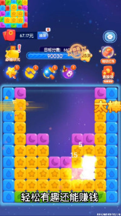 消除的方块越多我们能得到的积分加成也越高,积分达到通关限制就能成功通过一个关卡。