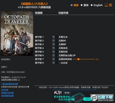 歧路旅人的故事发生在奥鲁斯特拉大陆,玩家需要扮演出身迥异,各怀绝技而又各有所求的八名旅人中其中一人,踏上他/她的旅途。游戏比较自由,为了更好的探索世界我们为大家提供了风灵月影大大只做的修改器。