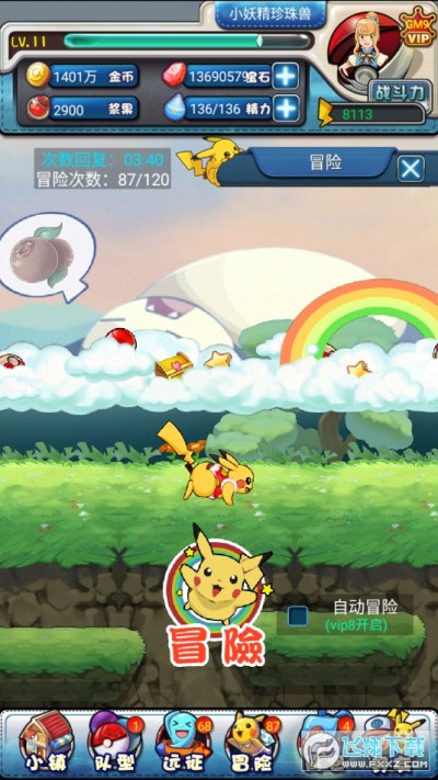 《果果联萌-送千元真充》基于动画原作精心制作完美重现小智与皮卡丘成为神奇宝贝大师的旅程。在游戏世界你,你可以遇到各式各样的精灵,踏上自己的精灵之旅。挑战游戏世界各地的道馆与劲敌,结识新的好友并和他们展开一次又一次冒险,参加神奇宝贝联盟大赛,战胜强悍的对手,最终成为和小智一样的神奇宝贝大师。