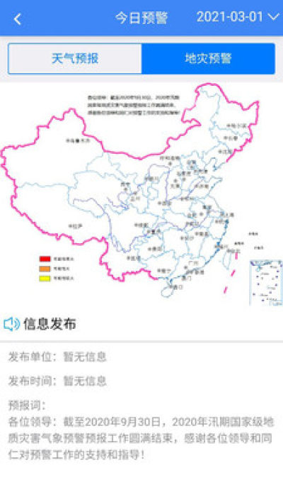 地灾指挥调度app是由中国地质环境监测院推出的一款针对地质灾害指挥调度工作软件,在这里可以查看各个地区的地质灾害信息,预警、隐患等等,在发生灾害后可以直接查看调度人员,查看工作情况!