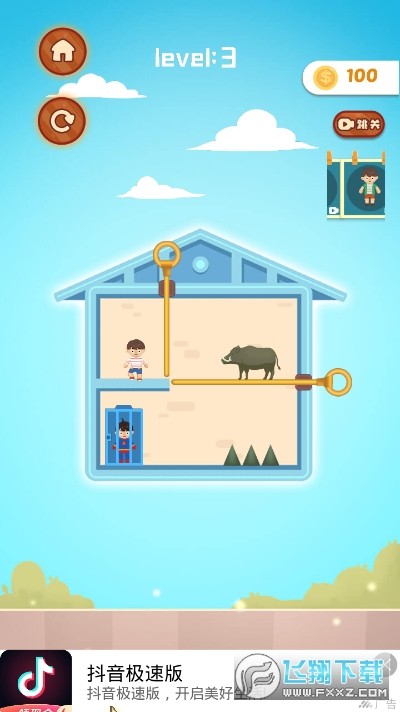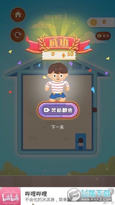 2、关卡的难度也是不一样的,开始会非常的简单,能够轻松的过关;