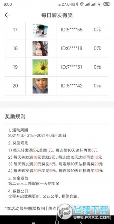 3、转发满20元奖励4元,连续10天达标再奖20元