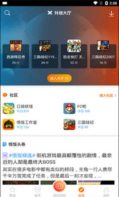 2.悟空游戏大厅社区是一款基于经典游戏爱好的玩家社区。汇聚海量街机、GBA、PSP、FC、PSP等经典机型游戏爱好者,为玩家提供交流互动的经典社区。