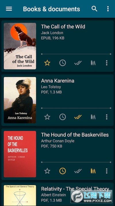 自动检测书籍和文件。例如, 只需从互联网上下载一本Epub书籍、PDF 期刊、Microsoft Word文档或 pdf 文章, 以便它们显示出来供读者阅读。轻松浏览文件夹和下载目录。按作者和系列对书籍进行分组。图书阅读列表有: 备读, 已读, 最爱。按名称、文件格式、上次读取时间等进行排序。"收藏" 工具 (书架) 允许创建个人专题收藏。书籍和文档可以同时添加到一个或多个收藏中。我们尽最大努力确保你们电子书库的秩序。