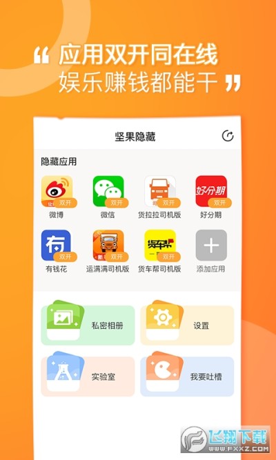 坚果隐藏app是一款手机双开应用隐藏类的软件,这款软件支持各种频繁使用的软件双开,多个账号登录,在坚果隐藏app上还能隐藏应用,操作简单,支持应用隐藏、照片隐藏还有图标隐藏等等,功能很多样,需要的快来试试吧!