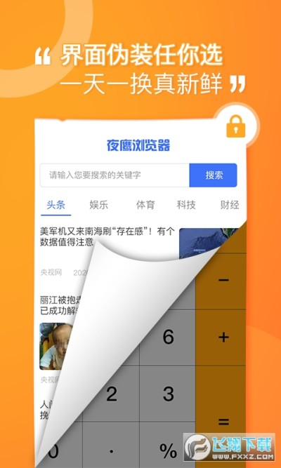 7、闪电切换-我们提供一键切换按钮,遇到紧急情况,一键切换到伪装新闻界面,让你的隐私永不暴露;