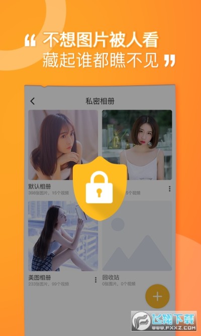 3、照片隐藏-隐私照片海量存储,私人相册管家,一键同步隐藏图片,云备份永不丢失,个人的隐私空间秘密尽在加密相册;