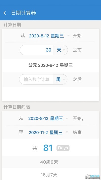 5.日期计算,轻松计算两个日期之间的分钟数、小时数、天数、周数、月数、年数;农历公历相互转换功能。