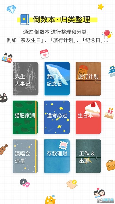 3.支持公历、农历的倒数日期计算提醒功能,重要事件醒目置顶,支持时间远近排序。