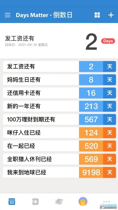 daysmatter软件是一个帮你记录生活中重要日子的小工具,例如:发工资还有多少天?还信用卡还有多少天?恋人生日还有多少天?宝宝出生已经多少天?来到地球已经多少天……