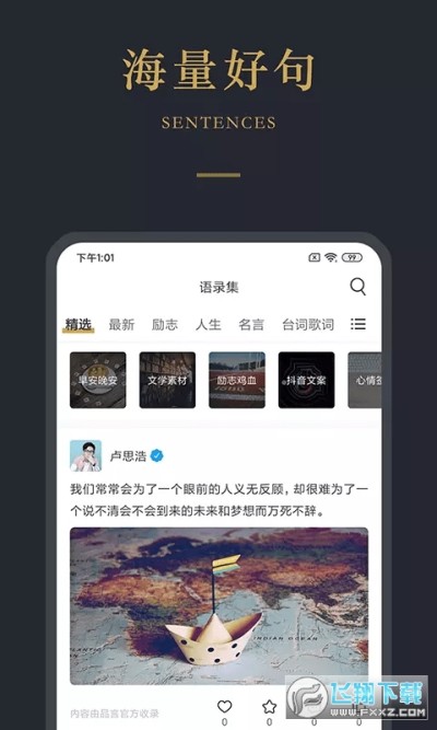 1、是款超文艺且独特美的阅读工具,这里面所提供的句子资源非常的多且更新速度快;