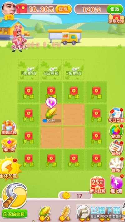 2、连续完成各种不同的任务,植物更多的水果和蔬菜,收割机的长度越长,您需要招募更多工人以帮助您管理农场;