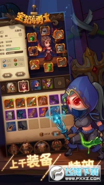 宝箱与勇士是一款放置挂机玩法策略类游戏。招募你的勇士,组建强力的队伍前往副本进行冒险。这里的每个角色都有自己的技能和天赋树,玩家可以根据不同的阵容来进行搭配,从而让每个人发挥出自己的最大作用。游戏中的装备系统也是非常多样的,你还可以收集材料自己打造神兵利器!