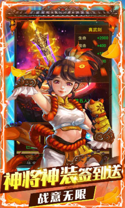 5.充值比例1:500,首充即送斩龙宝刀,战力飞升,杀敌如麻!