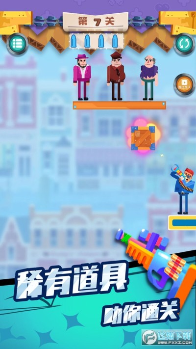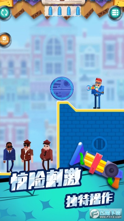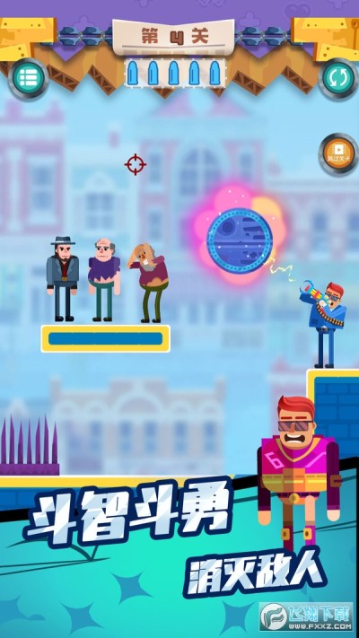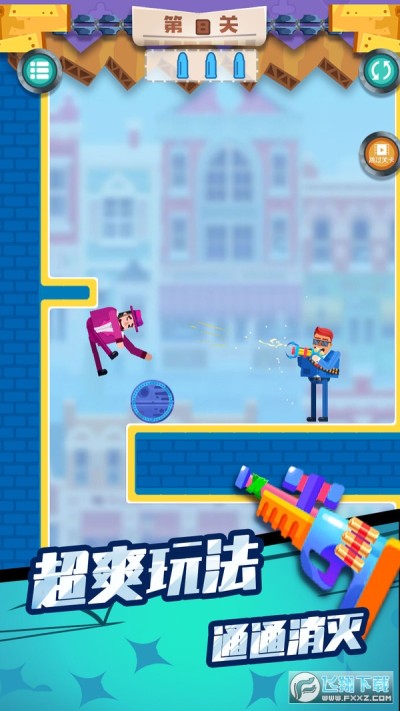 3、子弹先生终结行动游戏中收录了各式各样的枪支武器,玩家只需要使用金币即可免费解锁,升级改造获得更加强大的武器。配合精准的射击手法,将小镇上的罪恶消除干净!