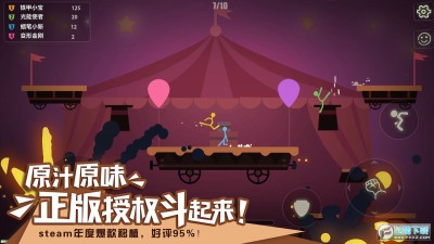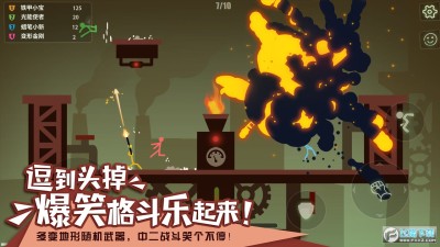 1、游戏继续使用经典火柴人游戏的图像。根据物理重力反馈,控制火柴人执行2-4人的格斗对决,