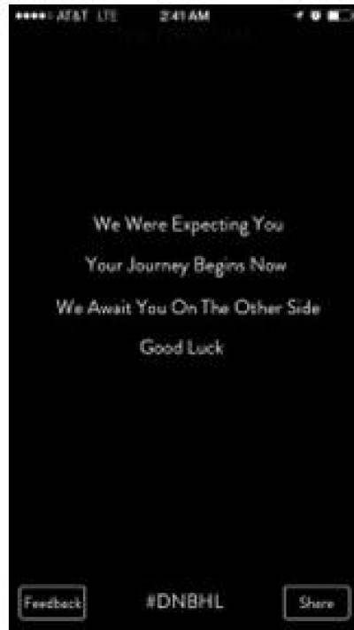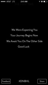 小编在这一关就卡了一会,试了画面左上角的时间、AT&T,或者下面的Share、Feedback,通通不是答案。直到她把萤幕调亮,才发现密码是"the first time"。(如果调亮萤幕还是找不到,请回到上一张图,由上往下俯视电脑/手机萤幕,它就在画面最上方)